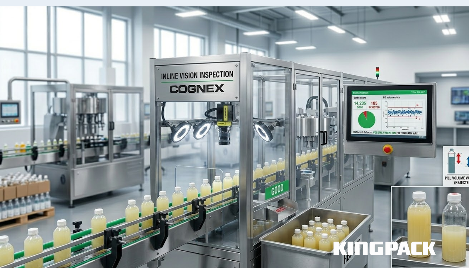 According to Cognex’s factory automation ROI analysis, implementing vision-based automated inspection frees skilled employees from tedious, repetitive tasks that lead to fatigue and disengagement, while delivering higher quality output with fewer defects.Inline vision inspection integrated into a fully automated filling line catches defects at the point of production rather than at end-of-line quality control, reducing rework cost and the volume of non-conforming product reaching secondary packaging.