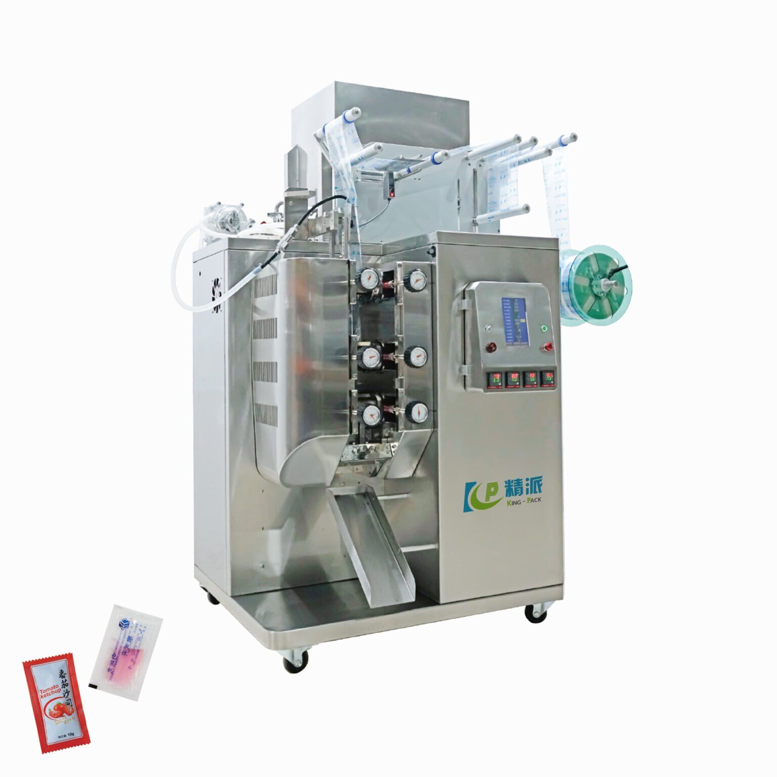 Sauce packaging systems use piston filling machines to fill and pack stick packs and sachets. lobe pumps and auger fillers handle viscous applications like thick pastes and those containing particulates, such as ketchup with pulp, chili sauces with seeds, and ready‑to‑eat gravies with vegetable pieces. The piston filler’s controlled suction and discharge cycle enables accurate dosing even when the product exhibits shear‑thinning behaviour or non‑uniform particle distribution. These systems are typically combined with robust vaccum sealers, adjustable dwell times, and high sealing pressures to guarantee hermetic seals through any contamination from oil or particulates at the seal area.​ They are compatible with different composite plastic films.