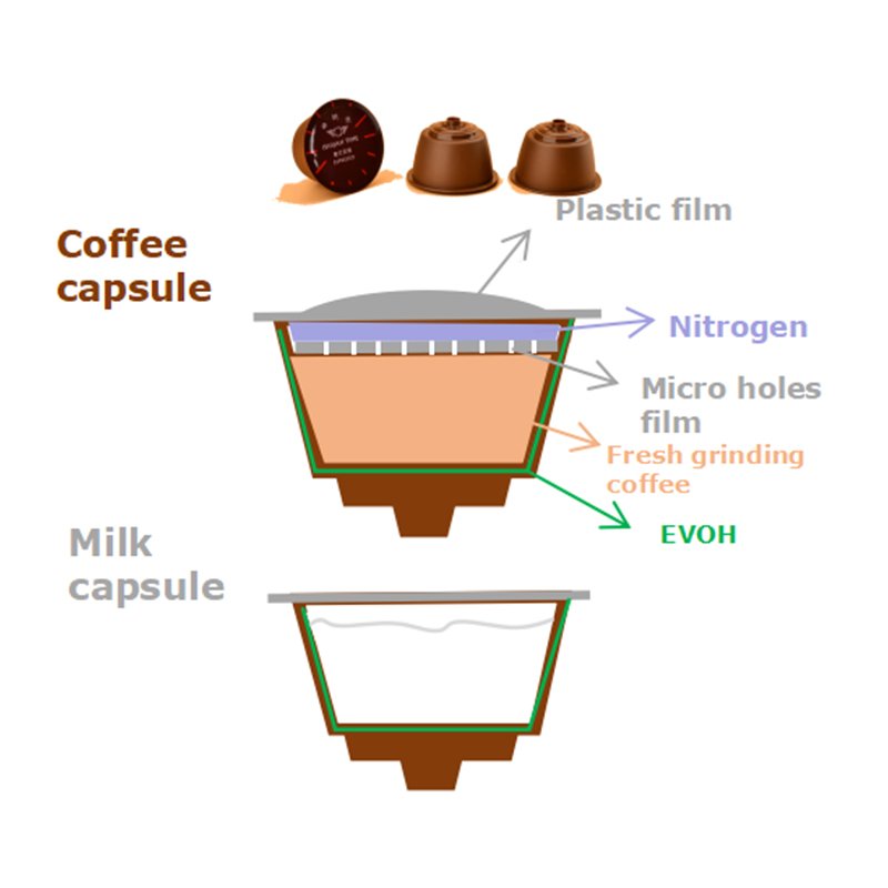 • Filling Materials: Fresh ground coffee powder; instant milk powder; instant powder