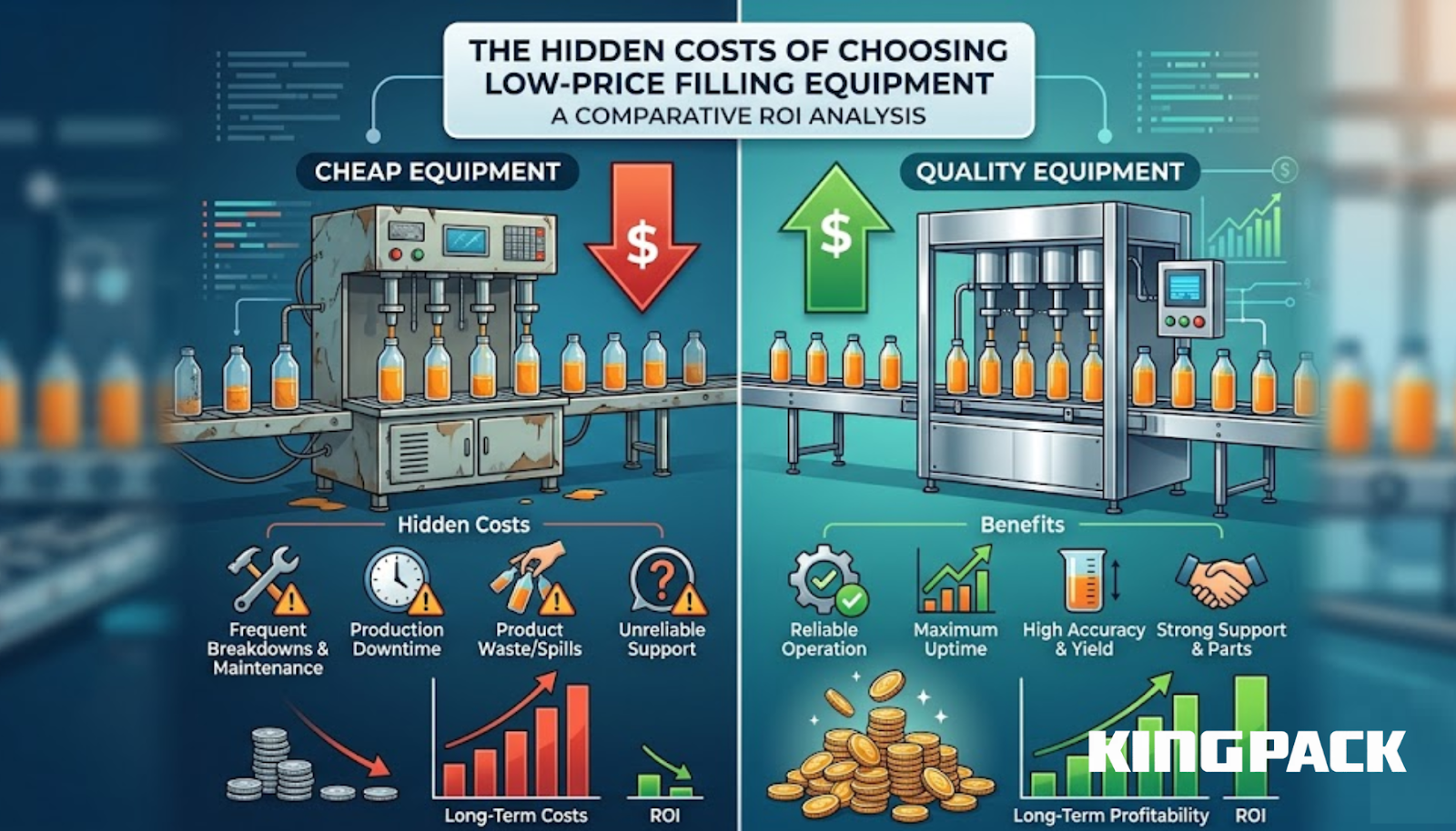 In this article, we walk through the six hidden cost categories that make a cheap servo driven filling system significantly more expensive than it first appears. We will explain how to evaluate a filling machine ROI correctly from the start, which leads to better capital decisions. Throughout, we will also explain how our King Pack filling systems are engineered to avoid each of these cost categories.