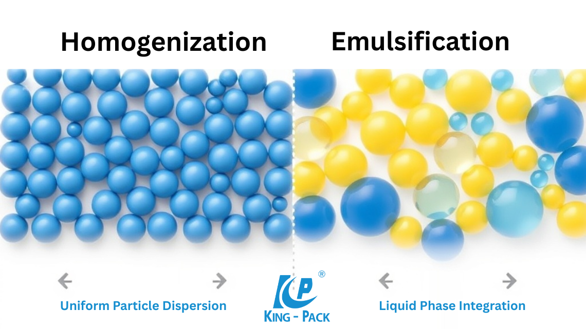 An industrial homogenizer is designed for large-scale operations where consistent particle reduction is essential. King Pack’s KPZ-100L vacuum emulsifying machine is one such solution, offering reliable homogenization for cosmetics, pharmaceuticals, and food production.