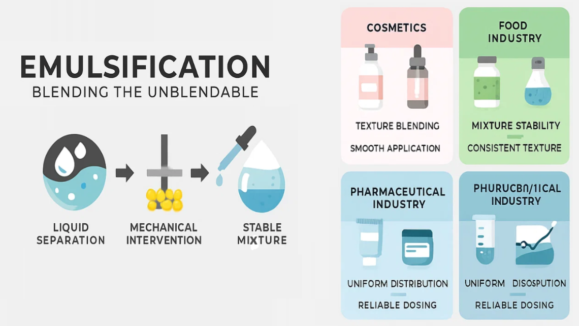 Emulsification is essential in industries where texture, stability, and appearance directly impact product quality: