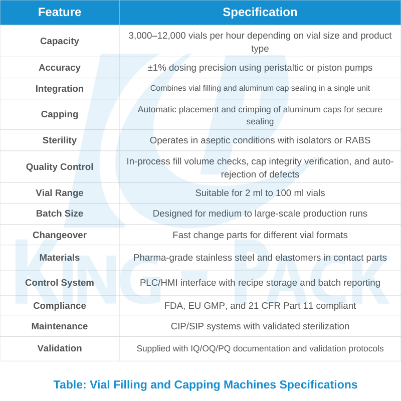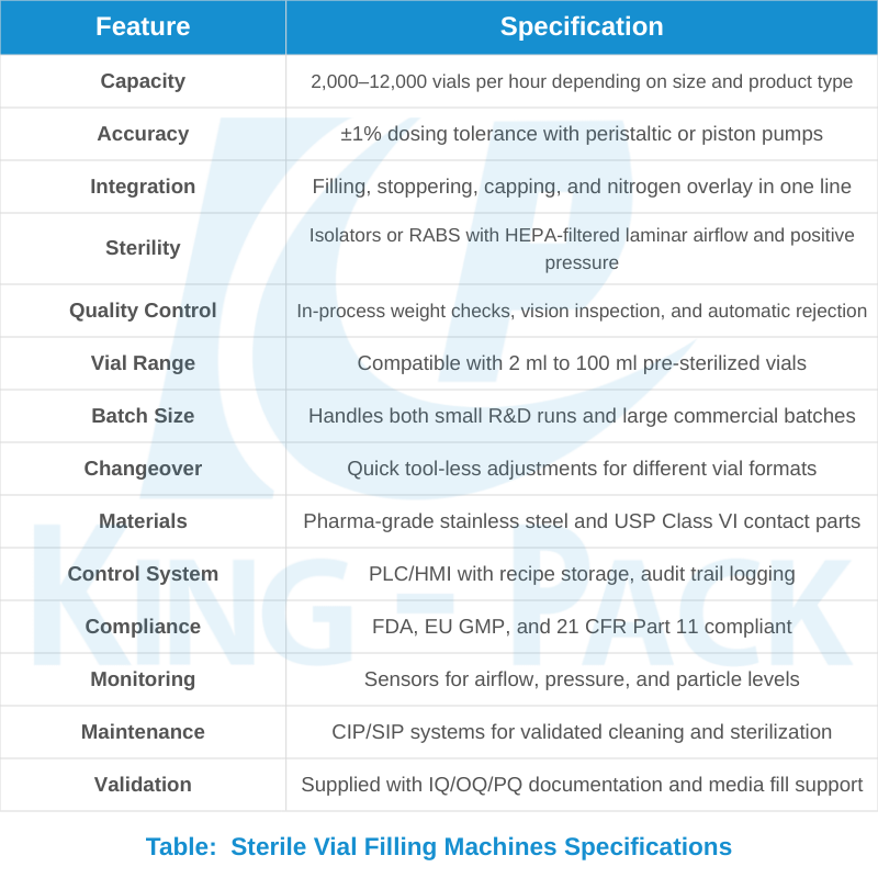 King Pack provides scalable vial filling solutions accommodating both current production requirements and future growth projections.